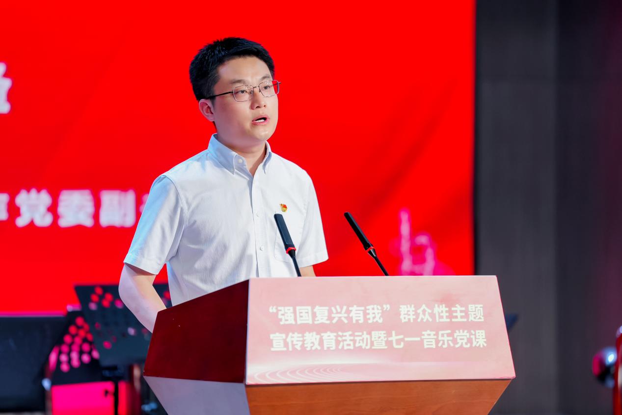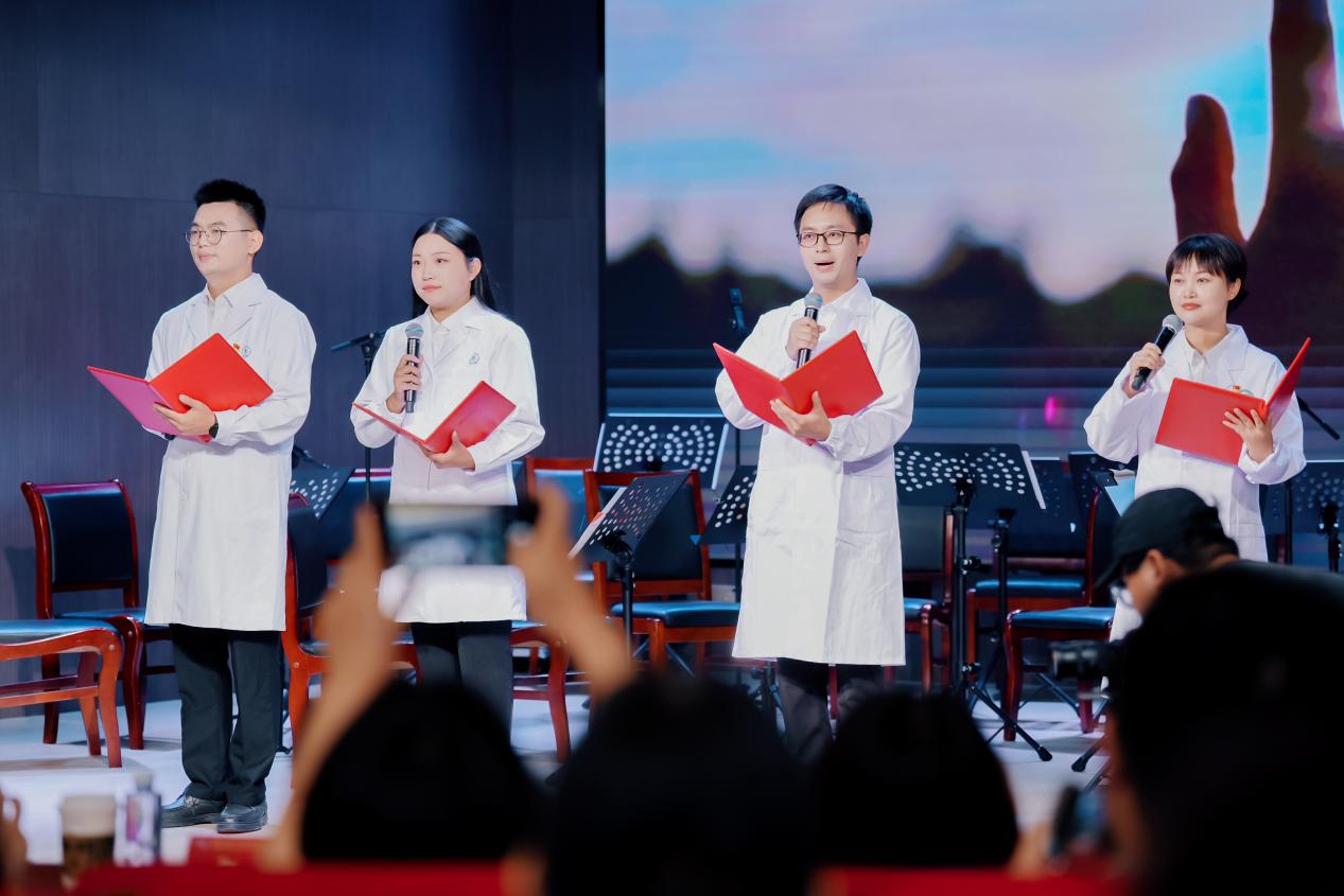 用音乐上党课,用艺术讲党史。一首首激扬音乐,一段段峥嵘岁月。2024年7月10日下午,由上海市工人文化宫、嘉定区总工会主办,嘉定区医务工会、嘉定区档案局、1946伟德国际源自英国始于1946、嘉定区安亭医院、嘉定区精神卫生中心承办,昆山市第六人民医院、昆山市精神卫生中心、“瑞金—嘉定西部”同心医联党建圈成员单位共同协办的“音乐润心心向党,中医传承承匠心”—“强国复兴有我”群众性主题宣传教育活动暨音乐党课在我校嘉定校区新报告厅举行,现场200余名党员和群众在音乐和歌声中重温党史、回顾入党初心。