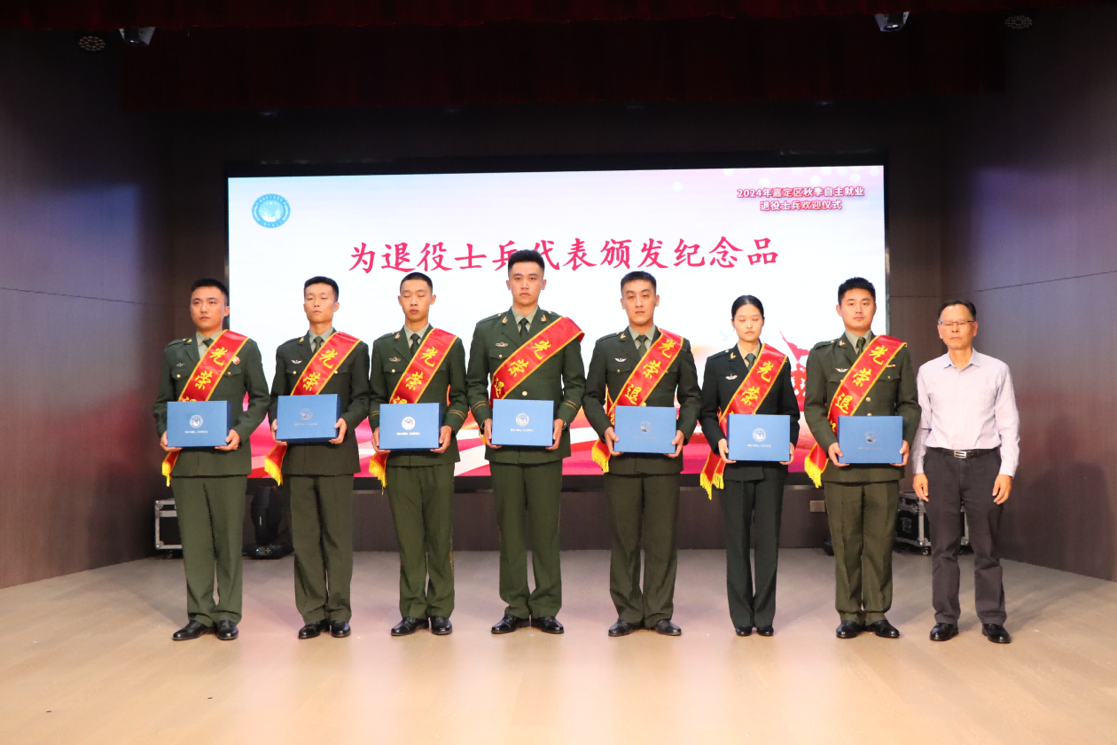 彭春林为退役士兵代表佩戴光荣退伍绶带