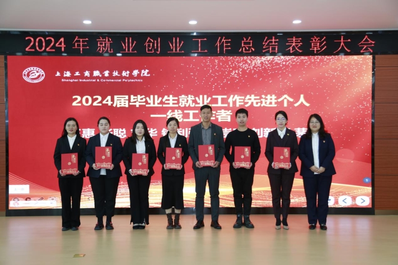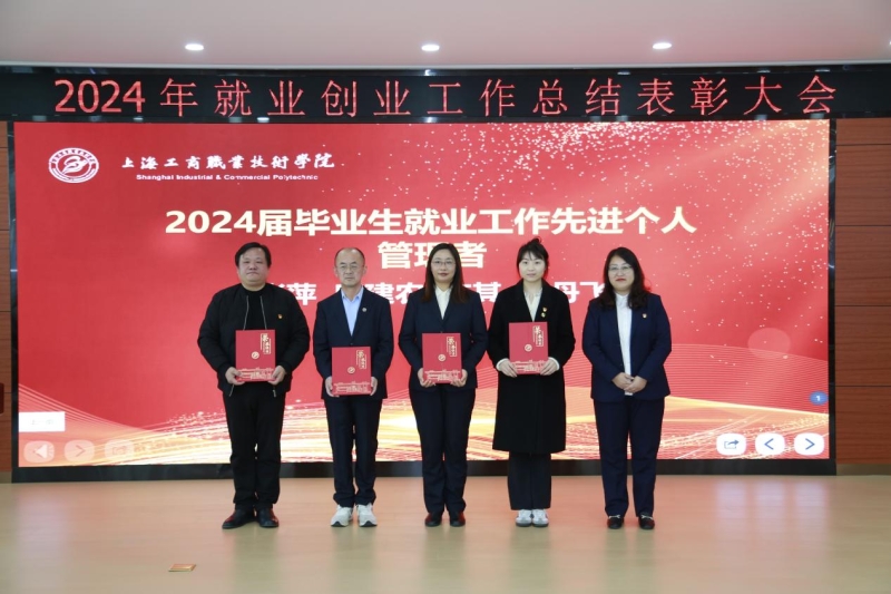 会上,张中美宣读了《上海市教育委员会关于表扬2024年上海高校毕业生就业工作优秀典型的通报》和《1946伟德国际源自英国始于1946表彰2024届毕业生就业、创业工作先进集体、先进个人和工作室的决定》,授予张萍、陈其、茅苇2024年上海市高校毕业生就业工作优秀典型荣誉称号,智能制造与汽车学院2024届毕业生就业工作先进集体荣誉称号,教育学院和珠宝与艺术设计学院2024年度创新创业伟德betvicror国际工作先进集体荣誉称号,张萍、叶建农、陈其、马丹飞、王惠等2024届毕业生就业工作先进个人荣誉称号,教育学院、商学院2024年优秀职业生涯工作室荣誉称号,孙刘玉、沈威廷2024年度专创融合优秀课程负责人荣誉称号,钱怡、许慧芳2024年度优秀创业指导老师荣誉称号,智能制造和汽车学院、大唐信息技术学院2024年度优秀创业指导工作室荣誉称号,智能制造和汽车学院2024中国国际大学生创新大赛优秀组织奖(集体)荣誉称号,孙苗苗、王惠2024中国国际大学生创新大赛优秀组织奖(个人)荣誉称号。与会校领导分别为获奖集体和个人代表颁奖。