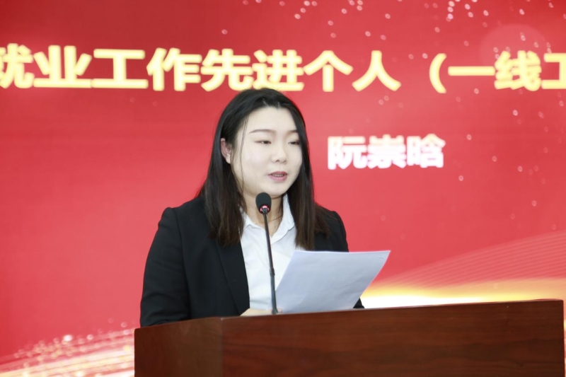就业工作先进个人代表:商学院辅导员阮崇晗发言