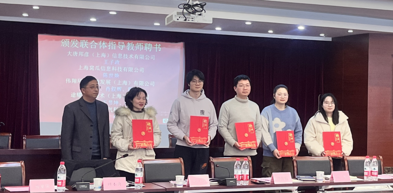 在区域产教联合体构建方面,学校通过上海嘉定产教联合体为载体,充分发挥联合体成员单位的技术人才资源,遴选出诸多优秀的联合体企业指导教师。李向明副校长为上海嘉定产教联合体的首批带教老师们颁发了聘书。
