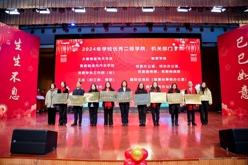 1月10日上午,我校2025年教职工新春联欢会在嘉定校区文体中心隆重举行。党委书记、理事长、政府督导专员金伟国,主持工作副校长王中强,党委副书记、副校长、工会主席张中美,副校长李向明,党委副书记、纪委书记孙洁,校长助理徐晓燕与全体教职工欢聚一堂,共同迎接蛇年新春的到来。